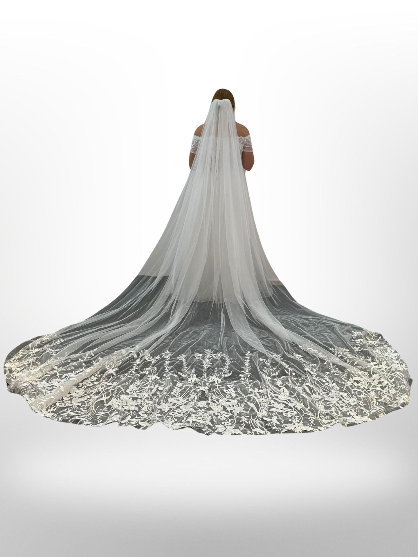 Velo de novia perfecto para complementar con vestidos de novia. La disponibilidad se confirmará una vez pasado el pedido a tienda, vía Whatsapp o a través del pedido directo en la página web.