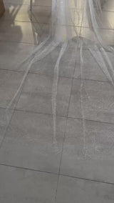 Velo de novia perfecto para complementar con el vestido. La disponibilidad se confirmará una vez pasado el pedido a tienda, vía Whatsapp o a través del pedido directo en la página web.