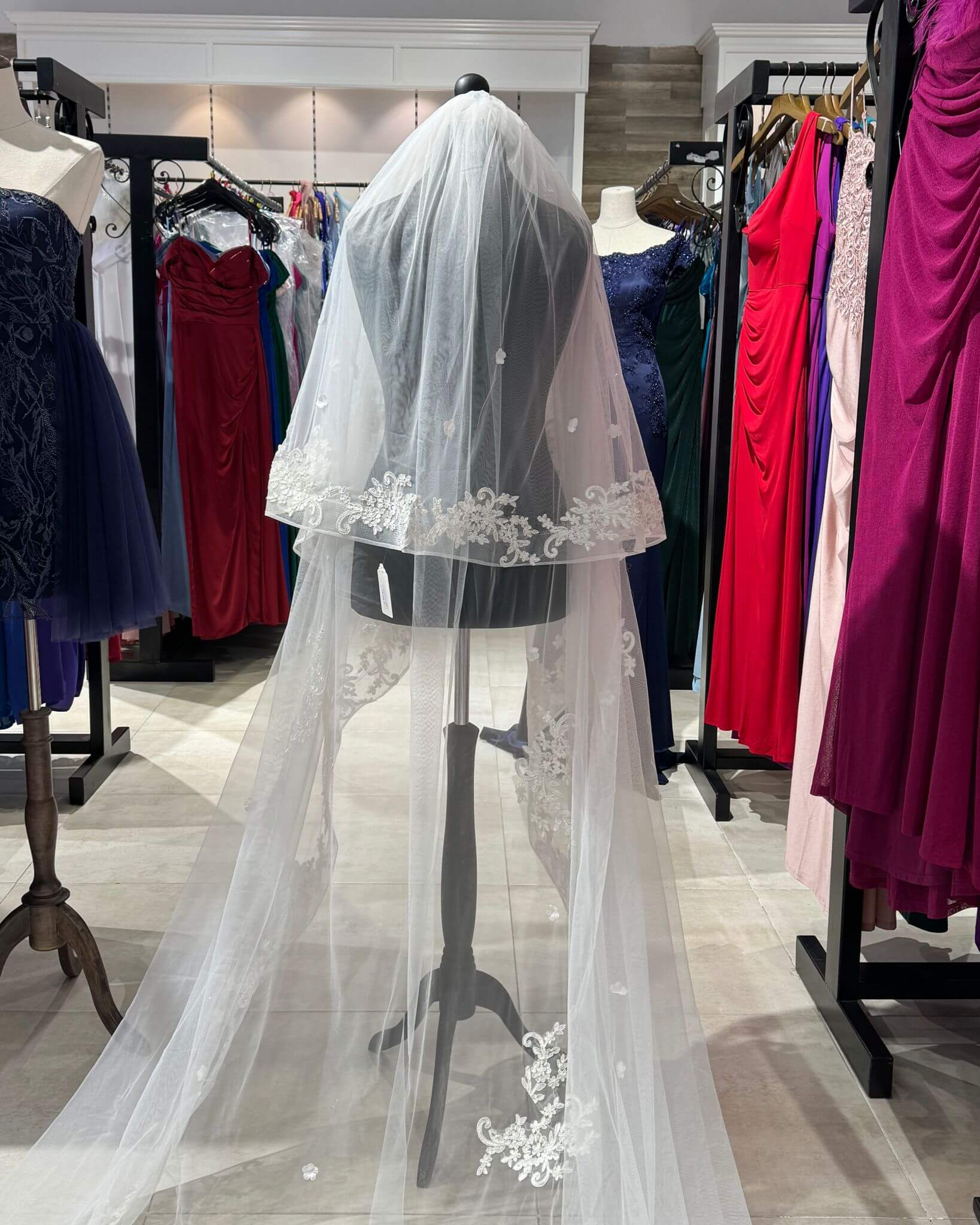 Velo de novia perfecto para complementar con vestidos de novia. La disponibilidad se confirmará una vez pasado el pedido a tienda, vía Whatsapp o a través del pedido directo en la página web.