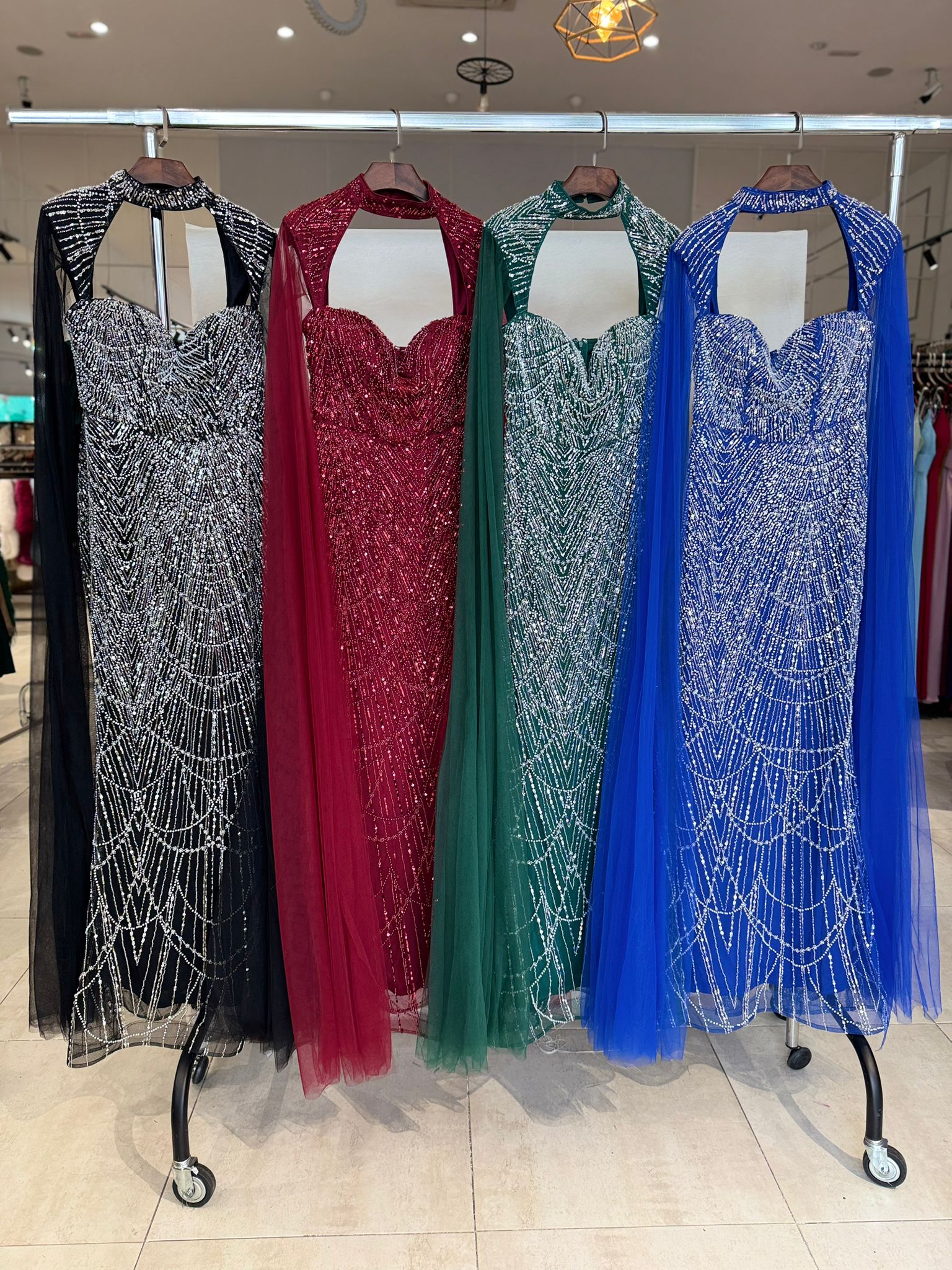 Vestido largo de pedredria, ideal para bodas, eventos, cocktails y todo tipo de celebraciones. La disponibilidad de las tallas y colores se acabará de confirmar una vez pasado el pedido a tienda, vía Whatsapp o a través del pedido directo en la página web