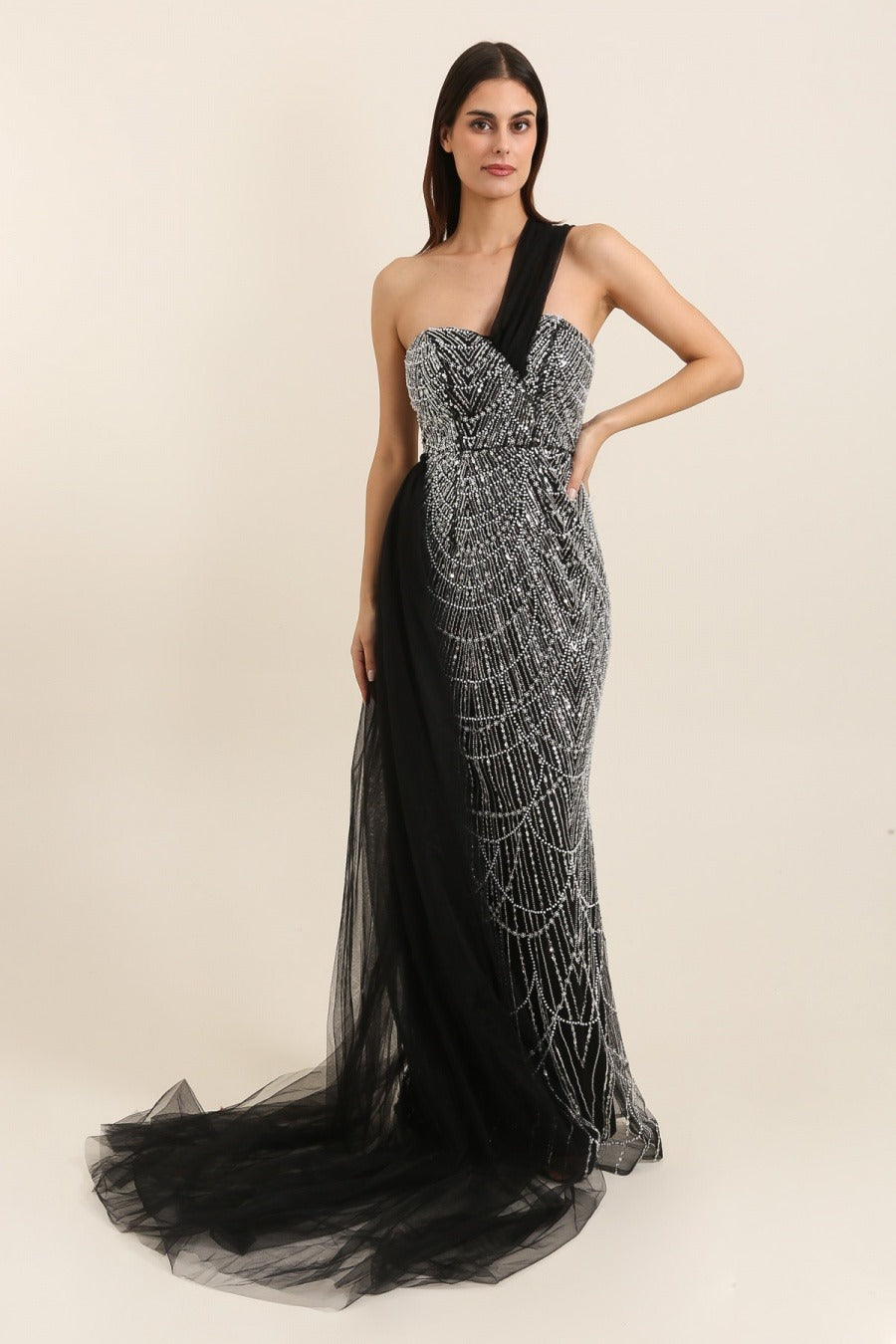 Vestido largo de pedredria, ideal para bodas, eventos, cocktails y todo tipo de celebraciones. La disponibilidad de las tallas y colores se acabará de confirmar una vez pasado el pedido a tienda, vía Whatsapp o a través del pedido directo en la página web