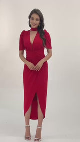 Vestido midi en lycra con manga, ideal para bodas, eventos, cocktails y todo tipo de celebraciones. Hecho con las mejores materiales y con un corte perfecto para sacar la musa que cada invitada lleva dentro. La disponibilidad de las tallas y colores se acabará de confirmar una vez pasado el pedido a tienda, vía Whatsapp o a través del pedido directo en la página web