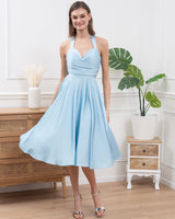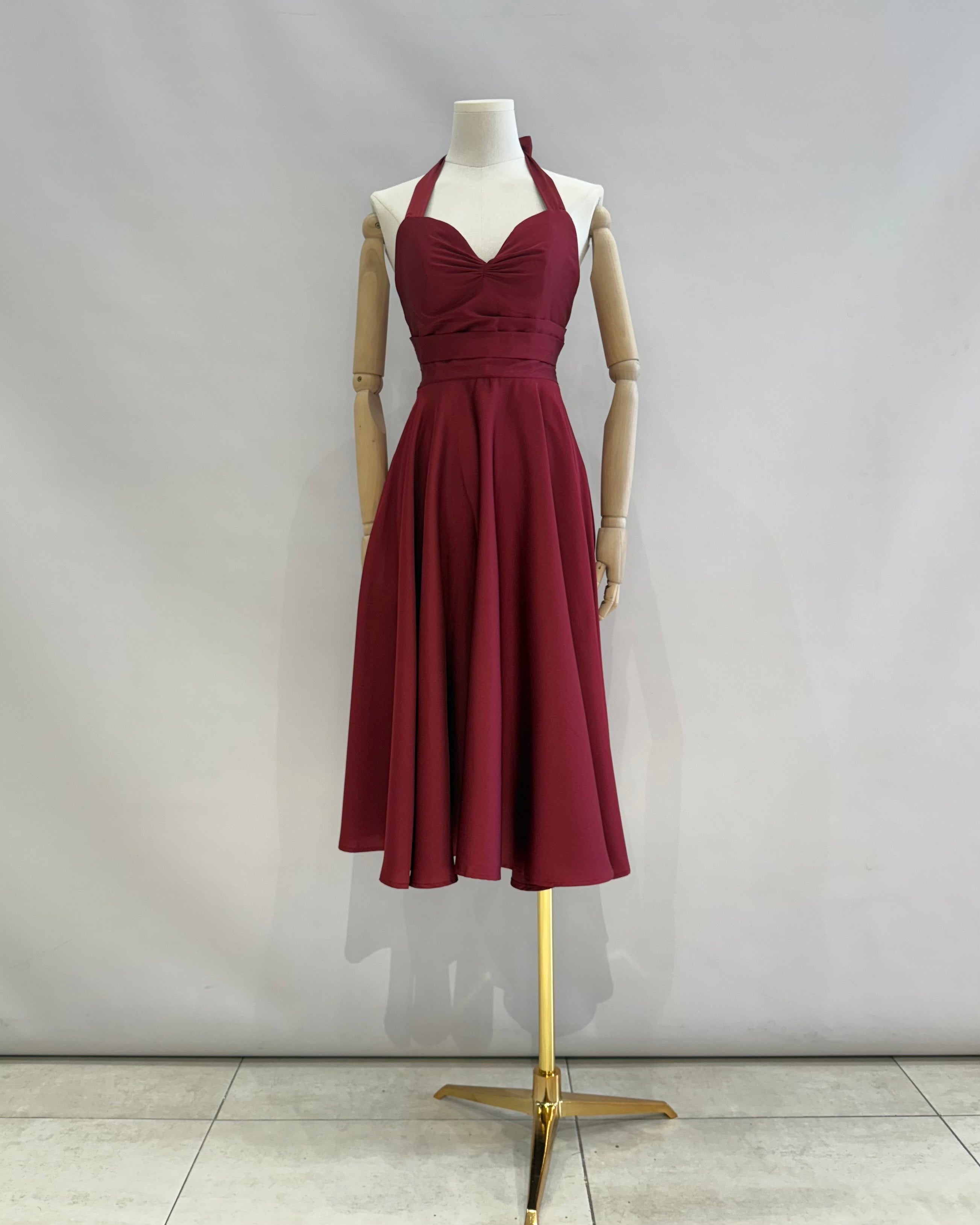 Vestido midi cuello halter ideal para bodas, eventos, cocktails y todo tipo de celebraciones. La disponibilidad de las tallas y colores se acabará de confirmar una vez pasado el pedido a tienda, vía Whatsapp o a través del pedido directo en la página web.