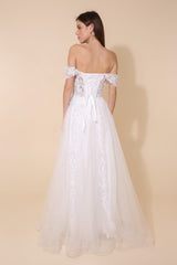 Vestido largo de tul en cuello barco ideal para bodas, eventos, cocktails y todo tipo de celebraciones. Tejido lentejuelas, con plumas en las mangas. La disponibilidad de las tallas y colores se acabará de confirmar una vez pasado el pedido a tienda, vía Whatsapp o a través del pedido directo en la página web.