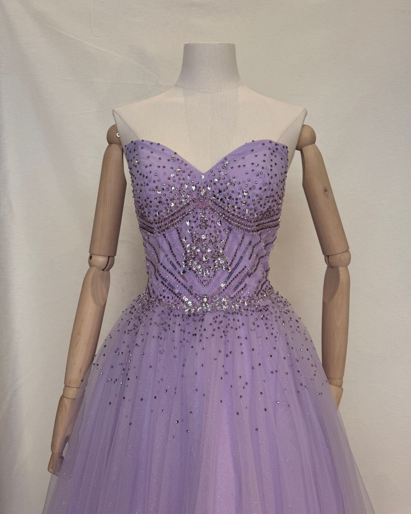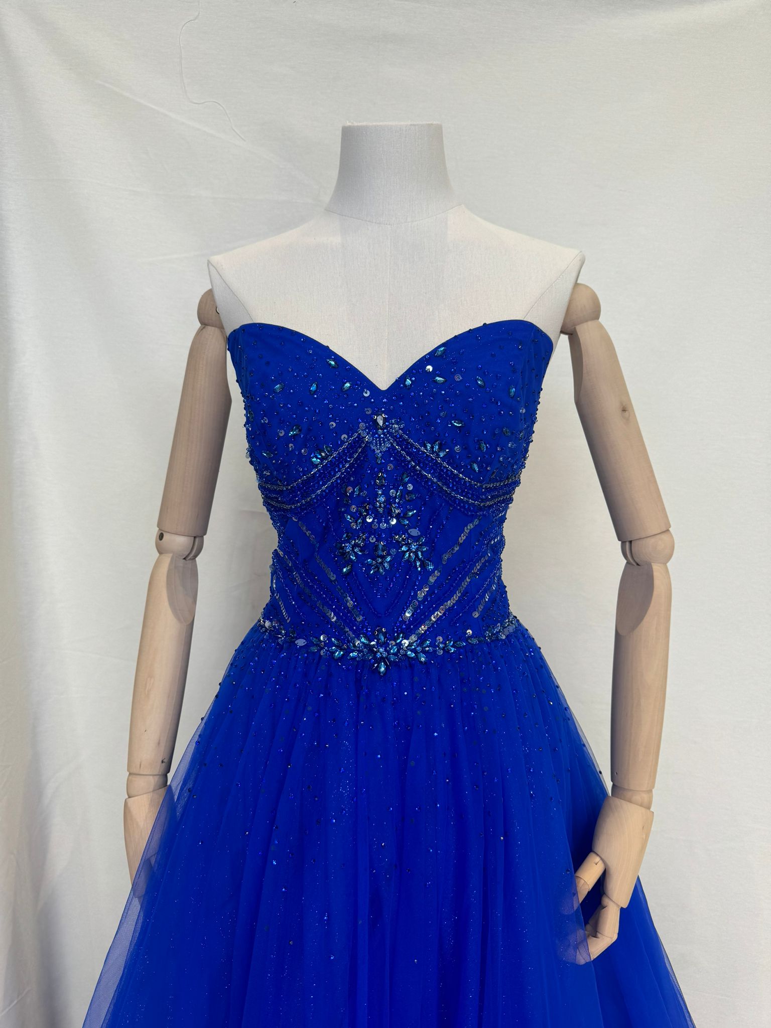 Hecho con las mejores materiales y con un corte perfecto para sacar la musa que cada invitada lleva dentro. Escote corazon con bordado de pedreria, espalda tipo corset.